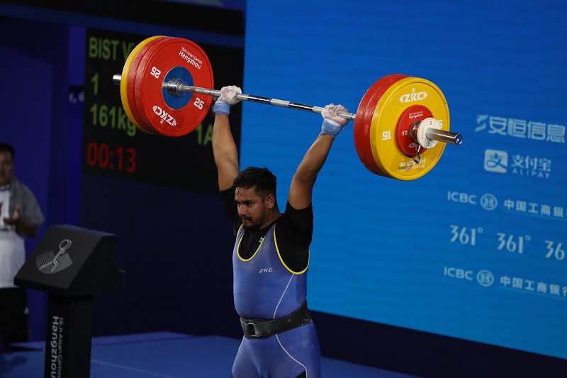 १९ औँ एसियाली खेलकुदको भारोत्तोलनमा नेपालका विशालसिंह विष्टले दुर्लभ कीर्तिमान बनाएका छन् । चियोसन स्पोर्ट्स सेन्टर जिम्न्याजिममा आज बिहीवार भएको पुरुष ९६ केजी तौल समूहमा विशालले ३ वटा राष्ट्रिय कीर्तिमानसहित कुनै पनि नेपाली खेलाडीले कुलमा पहिलो पटक ३०१ केजी वजन उठाउने अर्को दुर्लभ कीर्तिमान पनि बनाए । यसअघि कुनै पनि नेपाली भारोत्तोलकले कुनै पनि तौल समूहमा जम्मामा ३०० केजीसम्मको भार पनि वहन नगरेको भारोत्तोलन टिमका व्यवस्थापकसमेत रहेका नेपाल भारोत्तोलन सङ्घका अध्यक्ष रामकृष्ण श्रेष्ठले जनाएका छन् ।