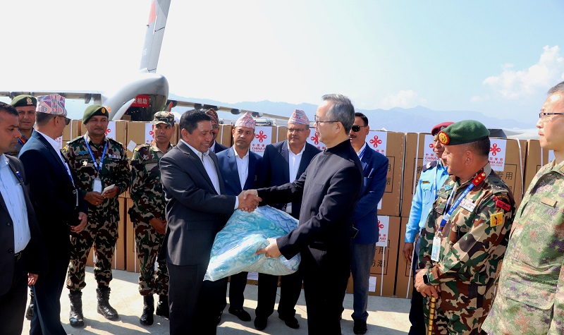 आज बुधवार बिहान चिनियाँ सेनाका दुई वटा कार्गो जहाज राहत सामग्री लिएर पोखरा विमानस्थलमा अवतरण भएका थिए । राहत सामग्री बुझेपछि उपप्रधानमन्त्री श्रेष्ठले चिनियाँ सरकारप्रति कृतज्ञता व्यक्त गर्नुभएको छ । नेपाल र चीन ऐतिहासिक मित्रदेश भएको, दुवै देश एकअर्काको दुःखमा साथमा रहेको भन्दै मन्त्री श्रेष्ठले यो द्रुत सहयोगले दुई देशबीचको घनिष्ठ सम्बन्धलाई अझ प्रमाणित गरेको बताउनुभयो ।