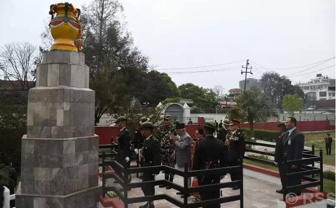 राष्ट्रप्रमुख र सरकार प्रमुखहरुले आफूले जिम्मेवारी सम्हालेसँगै शहीद स्मारकमा रहेको शहीद स्तम्भमा पुष्पगुच्छा अर्पण प्रचलन रहिआएको छ । उनि यही फागुन २५ गते राष्ट्रपति पदमा निर्वाचित भएका हुन् ।