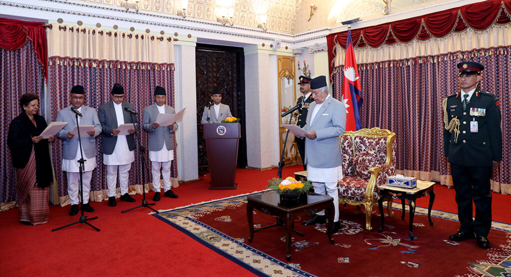 काठमाडौं । राष्ट्रपति रामचन्द्र पौडेलसमक्ष नवनियुक्त राजदूतहरूले पद तथा गोपनीयताको शपथ लिएका छन् । राष्ट्रपति पौडेलले आइतबार चार राजदूतलाई शपथ गराएका हुन् ।