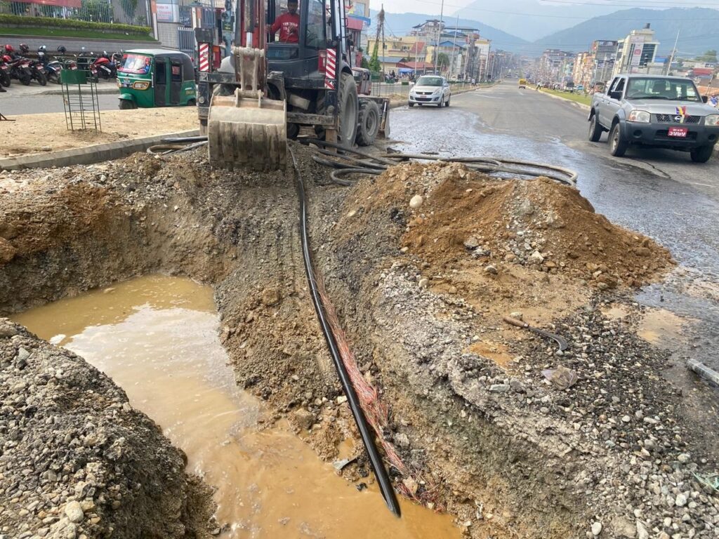 उनले भने ‘वरपर कतै मूल फुटेर वा खानेपानीको पाइप फुटेर टेलिकमको पाइपमा छिरेको हुनसक्छ । नत्र तार हाल्न विछ्याइएको पाइपमा यत्रो पानी कसरी आयो होला ।’ टेलिकमको पाइपमा कहाँबाट पानी छिर्यो भन्ने पहिचान गर्न नसक्दा मर्मत गर्न नसकिएको उनले जानकारी दिए । खानेपानी बोर्डलाई पत्राचार गरिएको र खानेपानी, टेलिकम, डिभिजन सडक र निर्माण कम्पनीका प्रतिनिधि बसेर निकास खोजी भइरहेको उनले बताए ।