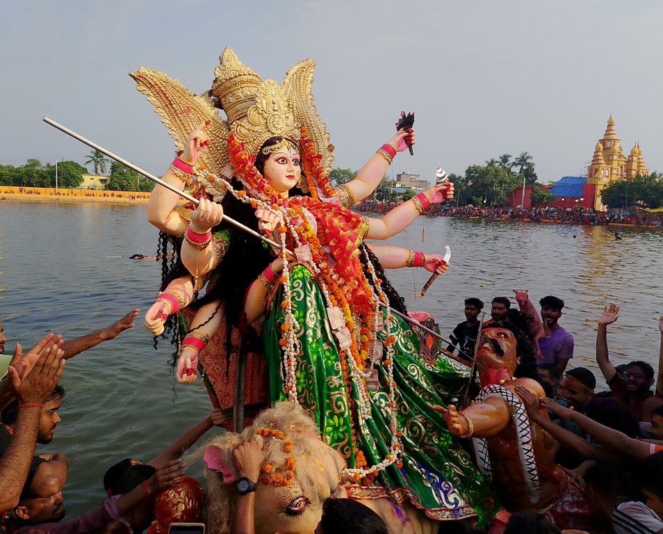 दुर्गा भवानीको प्रतिमाका साथै पूजाका लागि निर्माण गरिएको भगवान शिव, गणेश, कात्तिक, मातालक्ष्मी र माता सरस्वतीको प्रतिमालाई बरुण सरोवरमा सेलाइएको पूजा समितिका अध्यक्ष शिवचन्द्र चौधरीले जानकारी दिए । दुर्गा चोकबाट छट्टाछुट्टै ट्याक्टरमा राखी सबै मूर्तिलाई बुद्धीजीवीचोक, जिरोमाइल चोक, अस्पतालचोक, साहुजीपट्टी, नगरपालिका चोक, शंकरचोक हुँदै नगर परिक्रमा गरी बरुण सरोवर पुर्याइ सेलाइएको हो ।