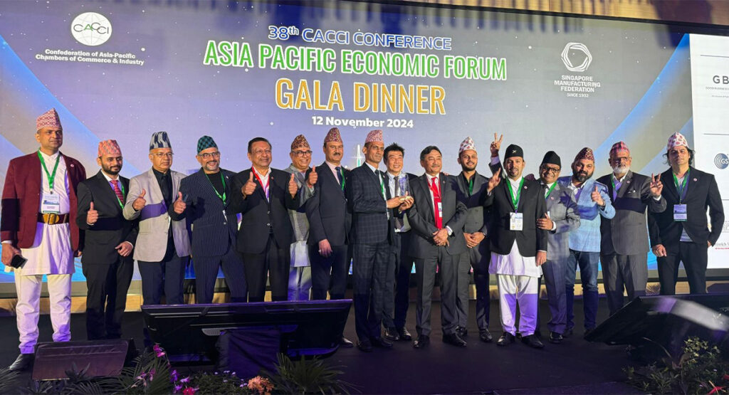 कन्फेडेरेशन अफ एशिया प्यासिफिक चेम्बर अफ कमर्श एण्ड ईण्डष्ट्रिज र सिङापुर म्यानुफ्याक्चरिङ एशोसिएशनको संयुक्त आयोजनामा कात्तिक २६ र २७ गते सिंगापुरमा भएको इकोनोमिक फोरम तथा ३८ औं क्यासी कन्फेरेन्सको समापन समारोहमा सङ्गठनका अध्यक्ष राकेश सुरानाले अवार्ड ग्रहण गरे ।