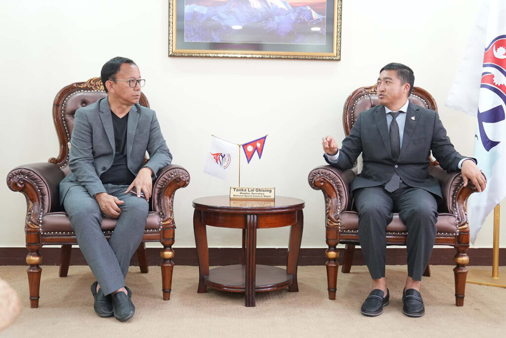 काठमाडौं । राष्ट्रिय खेलकुद परिषद् (राखेप)का सदस्यसचिव टंकलाल घिसिङ र अखिल नेपाल फुटबल संघ (एन्फा)का अध्यक्ष पंकजविक्रम नेम्वाङबीच दशरथ रंगशालाको मैदान स्तरोन्नतिका विषयमा छलफल भएको छ । मैदान स्तरोन्नतिका निम्ति लाग्ने समय, बजेटलगायत विषयमा गएको बुधबार दुई पक्षबीच प्रारम्भिक छलफल भएको हो ।