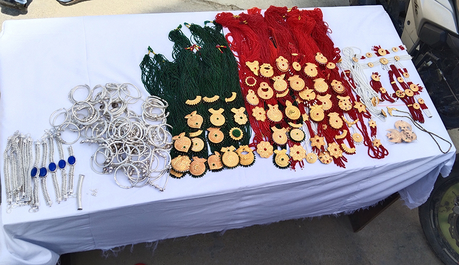बराइलीले बोकेको झोलाबाट हरियो पोतेमा जडित सुनका १८ थान माला, ३० थान रातो पोतेमा जडित माला, ५ थान सेतो मोती जडित माला, ६ थान खुला चन्द्रमा, पोतेमा जडित चक्र थान चक्र, पोतेमा जडित मङ्गलसुत्र एक थान बरामद गरेको जिल्ला प्रहरी कार्यालय सिरहाका प्रवक्ता डीएसपी मुक्ति सापकोटाले जानकारी दिए।