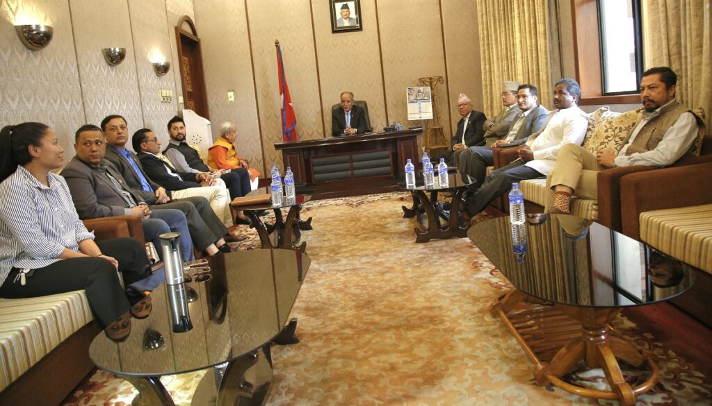 केही दिनअघि सत्तारुढ दुई दल मधेशी लोकतान्त्रिक पार्टी र नागरिक उन्मुक्ति पार्टीका नेतासहित बैठक गरेका विपक्षी दलहरू राजनीतिक भेटघाटमा सक्रिय भएका हुन् । यसअघि प्रधानमन्त्री केपी शर्मा ओलीलाई भेटेर दल विभाजनसम्बन्धी अध्यादेशसहित समसामयिक विषयमा ज्ञापनपत्र बुझाएका विपक्षीहरूले अब राष्ट्रपतिलाई भेट्न लागेका हुन् ।