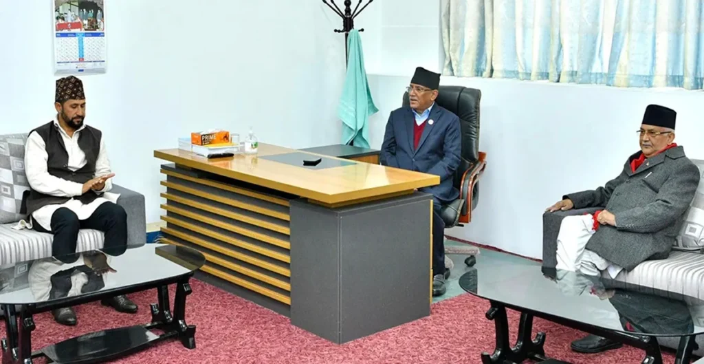 प्रधानमन्त्री दाहाल र अध्यक्ष ओलीबीच आइतबार दिउँसो भेटवार्ता भएको थियो। उनीहरूबीच करिब एक घन्टा एक्लाएक्लै छलफल भएपछि उपप्रधान तथा गृहमन्त्रीसमेत रहेका रास्वपा सभापति लामिछाने पनि पुगेका हुन्।