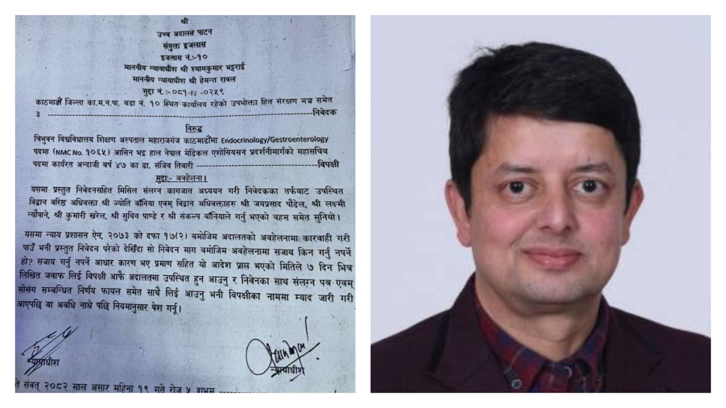 न्यायाधीशद्वय श्याकुमार भट्टराई र हेमन्त रावलको संयुक्त इजलासले उपभोक्ता हित संरक्षण मञ्चले दायर गरेको निवेदनमा प्रारम्भिक सुनुवाइ गर्दै ‘कारण देखाउ’ आदेश जारी गरेको हो । अदालतले डा. तिवारीलाई ७ दिनभित्र व्यक्तिगत रूपमा अदालतमा उपस्थित भई ‘अवहेलनाको कसुरमा किन कारबाही नगर्नु पर्ने हो’ भन्ने स्पष्ट कारण र प्रमाण पेश गर्न निर्देशन दिएको हो ।