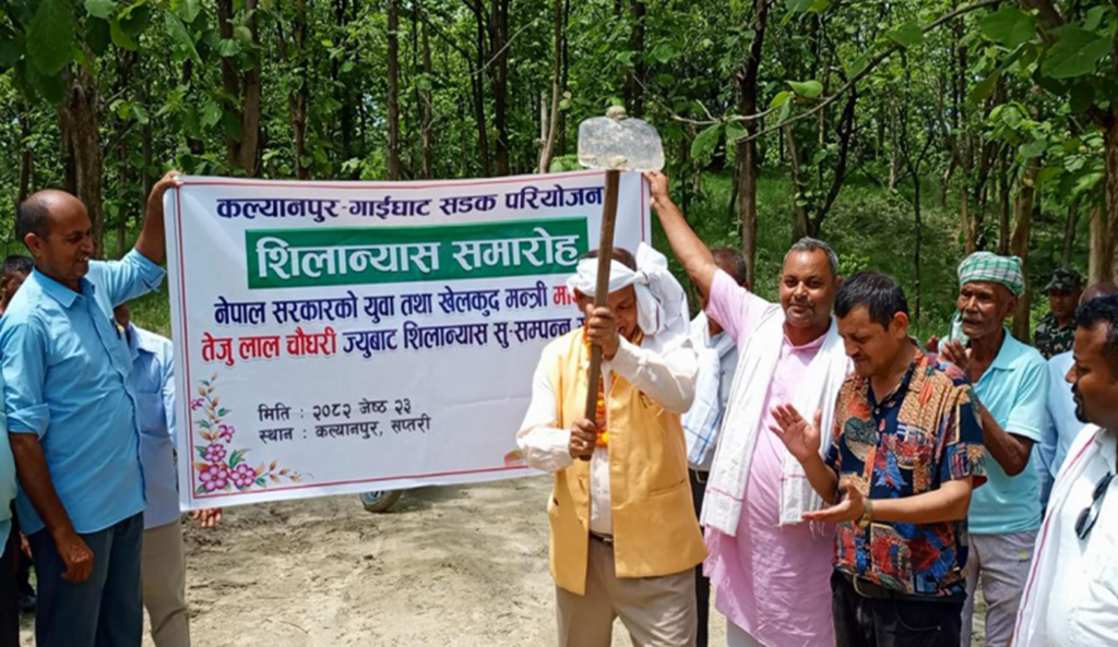 युवा तथा खेलकुद विकासमन्त्री एवं सप्तरी क्षेत्र नम्बर ४ का सङ्घीय सांसद तेजुलाल चौधरीले सडक निर्माण कार्यको शिलान्यास शुक्रबार गरेका थिए । उनले सहरीकरणका कारण जनघनत्व बढ्दै गएको हुँदा सवारी साधन आवागमनमा सहजताका लागि नयाँ ट्रयाक खोल्न थालिएको बताए।