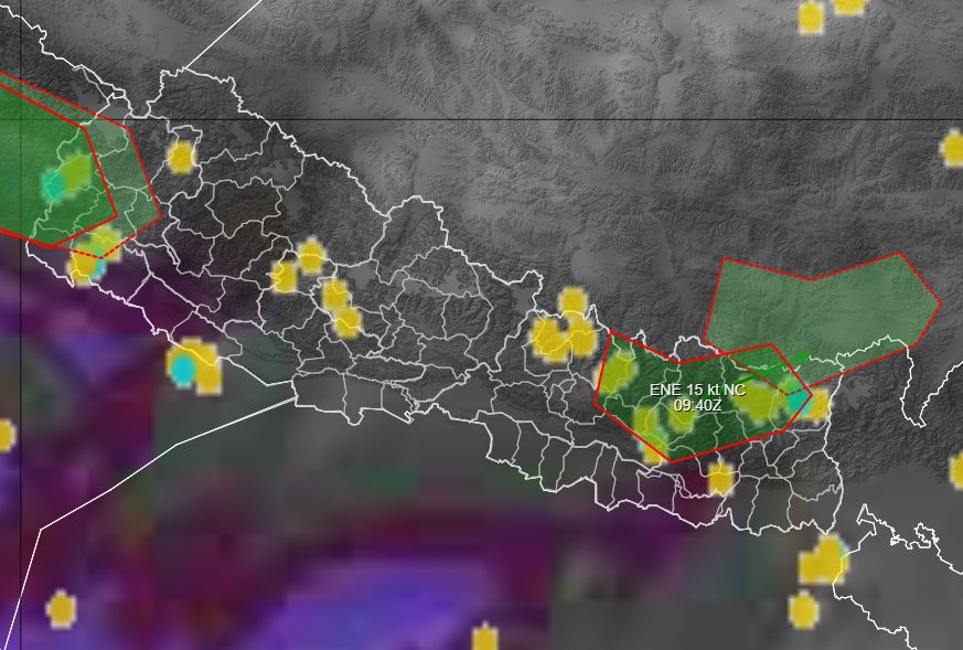 कोशी प्रदेशका थोरै स्थान तथा बाँकी प्रदेशका पहाडी भूभागका एकदुई स्थानमा मेघगर्जन र चट्याङसहित हल्कादेखि मध्यम वर्षाको सम्भावना रहेको छ । उच्च पहाडी तथा हिमाली भूभागका एकदुई स्थानमा हल्का वर्षा र हिमपातको सम्भावना रहेको छ ।