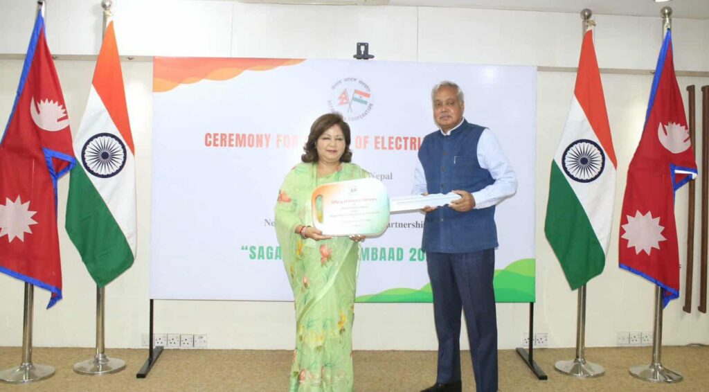 काठमाडौं । नेपाल सरकारद्वारा यसै हप्ता आयोजना गरिएको सगरमाथा संवादको पहिलो संस्करणका लागि सहयोगस्वरुप भारत सरकारले १५ ओटा विद्युतीय सवारी साधन (गाडी) उपलब्ध गराएको छ । नेपाल भारत सहयोग कार्यक्रम अन्तर्गत उपलब्ध गराइएका ती सवारी साधन आज परराष्ट्र मन्त्रालयमा आयोजित एक समारोहमा परराष्ट्रमन्त्री डा आरजु राणा देउवालाई नेपालका लागि भारतीय राजदूत नविन श्रीवास्तवले हस्तान्तरण गरेका हुन् ।