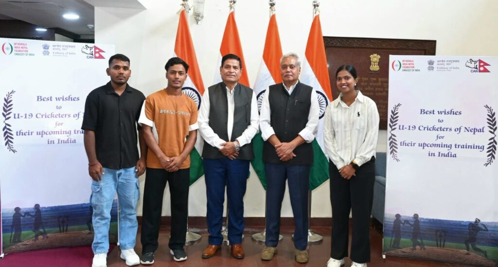 काठमाडौँ— भारतीय दूतावास, काठमाडौंले नेपाली युवाहरूका लागि सुरु गरेको राजदूत क्रिकेट फेलोशिप कार्यक्रमअन्तर्गत तीन जना नेपाली यू–१९ क्रिकेट खेलाडी भारतको भोपालमा एक महिनाको विशेष प्रशिक्षणमा सहभागी हुने भएका छन् ।