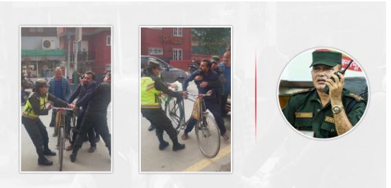 काठमाडौं । काठमाडौं महानगरपालिकाको नगरप्रहरी फेरि विवादमा तानिएको छ। बालुवाटार क्षेत्रमा साइकल चढेर घर फर्किरहेका एक व्यक्तिसँग नगरप्रहरीको दुर्व्यवहार सामाजिक सञ्जालमा भाइरल भएपछि आलोचना चुलिएको छ। भिडियोमा देखिएअनुसार प्रहरीले साइकल खोस्ने प्रयास भएको देखिन्छ। घटनापछि इन्स्पेक्टर शम्भु विष्टलाई कारबाही गरिएको छ। महानगर प्रहरी प्रमुख राजुनाथ पाण्डेले अमर्यादित व्यवहार भएको स्वीकार्दै, घटनाको जिम्मेवारी लिएका छन्।
