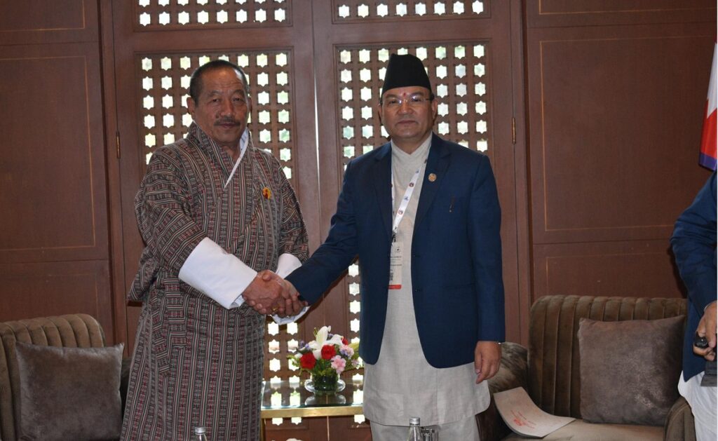 काठमाडौं– वन तथा वातावरण मन्त्री ऐनबहादुर शाही ठकुरी र नेपाल भ्रमणमा रहेका भुटानका ऊर्जा तथा प्राकृतिक स्रोतमन्त्री जेम छिरिङबीच भेटवार्ता भएको छ ।