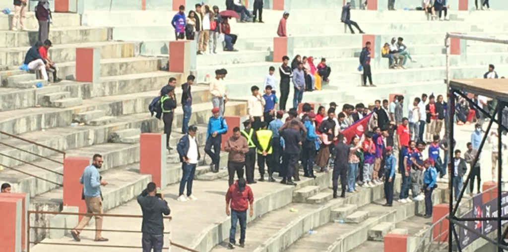 आईसीसी यू–१९ विश्वकप एसिया छनोट अन्तर्गत नेपाल र अफगानिस्तानबीचको खेल रद्द भएर नेपाल विश्वकपबाट वञ्चित भएपछि फ्यानहरू आक्रोशित बनेका छन् । बिहानैदेखि मैदानमा उपस्थिति जनाएका समर्थकहरू मैदान सुकाउने काम भइन्जेल खेल सुरु हुनेमा आशावादी थिए ।