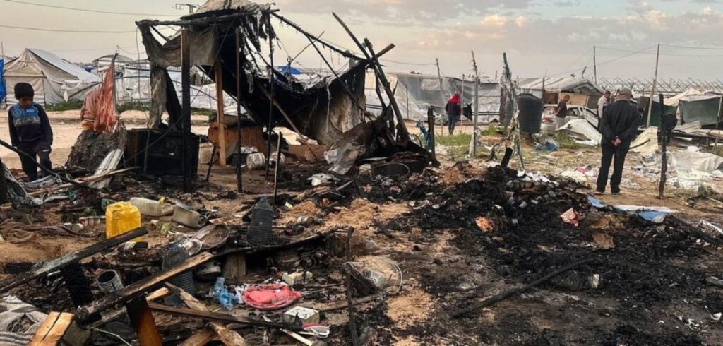 गाजाको अधिकांश जनसङ्ख्या २१ महिनाको द्वन्द्वमा कम्तीमा एक पटक विस्थापित भएको छ र भूमध्यसागरीय तटमा रहेको अल–सती शिविरले उत्तरबाट विस्थापित हजारौँ मानिसलाई पाल र अस्थायी आश्रयमा राखेको छ ।