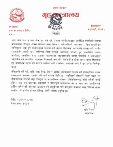 काठमाडौं । सरकारले राजसंस्था पुनस्थापना लागि संयुक्त जनआन्दोलन परिचालन समितिका कमाण्डर दुर्गा प्रसाईंलाई कारबाहीको दायरामा ल्याइने बताएको छ ।गृह मन्त्रालयका सहसचिव छवि रिजालले शुक्रबार साँझ पत्रकार सम्मेलन गर्दै प्रसाईंलाई कारबाहीको दायरामा ल्याइने बताएका हुन् ।