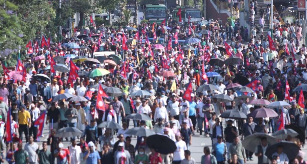 ‘जहाँ जहाँबाट तपाईंहरु समूहमा आउनु भयो, त्यही ठाउँमा भोलि १२ बजे जम्मा भएर फेरि जुलुस हुँदै काठमाडौंका सबै शहरमा नारा जुलुस लगाउँदै, काठमाडौंलाई उठाउँदै जगाउँदै आउनु होला’, उनले कार्यकर्तालाई आह्वान गर्दै भने, ‘दिनको १ बजेसम्ममा माइतीघर मण्डला र विजुली बजार क्षेत्रमा आउनु होला ।’