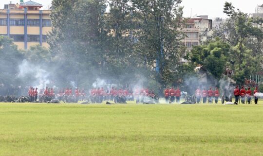 काठमाडौं– नेपाली सेनाले फूलपातीका अवसरमा सैनिक मञ्च टुँडिखेलमा फूलपाती बढाइँ गरेको छ ।